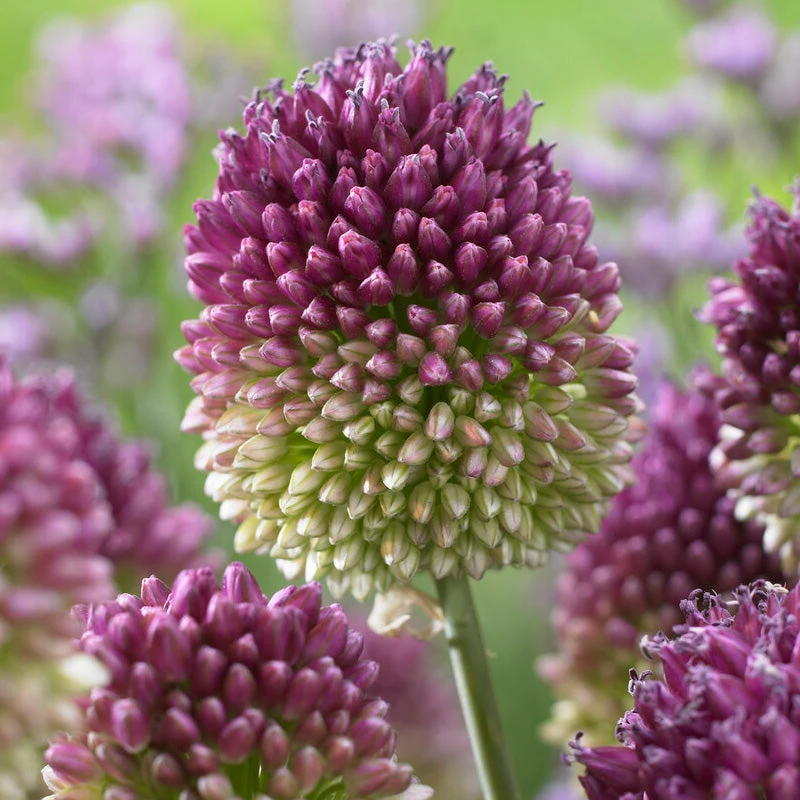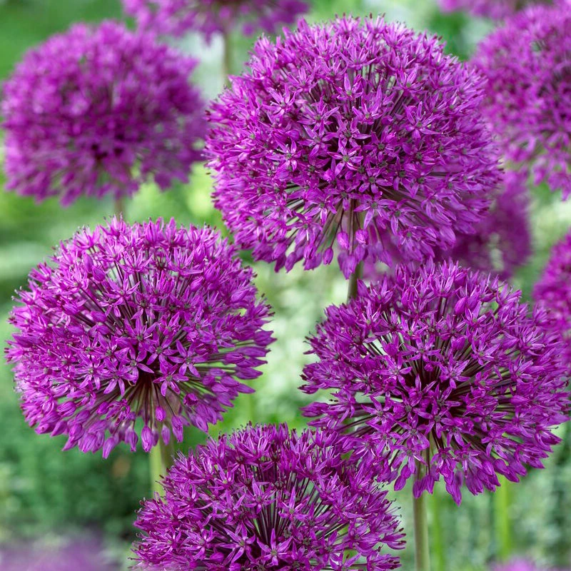 Collection of the following bulbs to create a mass of purple blooms: Crocus Flower Record, Allium Drumsticks, Hyacinth Woodstock, Allium Purple Sensation